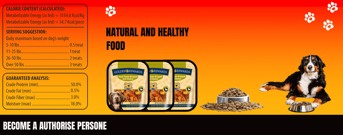 Golden Rewards Sweet Potato Wrapped with Chicken Dog Treats, the epitome of flavor and nutrition for your beloved furry companion! Crafted with the utmost care and attention to detail, these delectable treats offer a wholesome snacking experience that your pup will wag their tail for. At the core of each treat lies the perfect combination of real chicken breast and sweet potato, carefully selected to ensure the highest quality and most irresistible taste. But it's not just about flavor, these treats are a powerhouse of nutrition, thanks to the inclusion of sweet potato. Rich in fiber, this superfood aids in digestion and promotes gastrointestinal health, keeping your pup's tummy happy and comfortable. But that's not all; sweet potato also boasts an impressive array of vitamins and minerals, including iron, calcium, and vitamin C. Iron supports healthy blood circulation, calcium strengthens bones and teeth, while vitamin